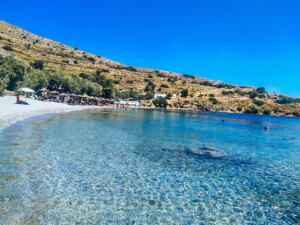 Βρομόλιθος: Ιδανική για όσους προτιμούν την ηρεμία, αυτή η μικρή παραλία έχει βότσαλα και σκιά από αλμυρίκια.
