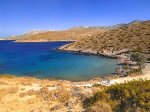 Ξηρόκαμπος: Μια απομονωμένη παραλία με εξαιρετική φυσική ομορφιά. Εδώ μπορείτε να απολαύσετε την ησυχία και το κολύμπι στα καταγάλανα νερά.